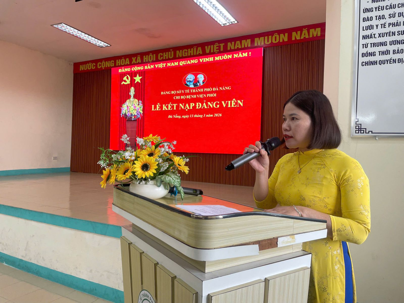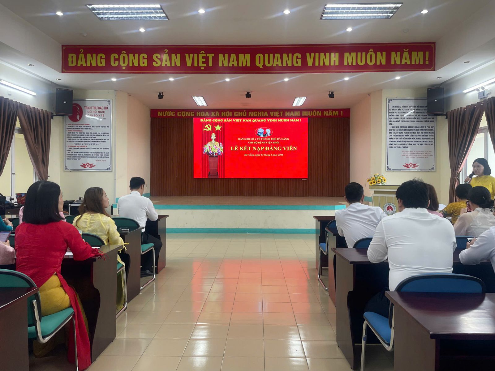 Nhằm tăng cường công tác xây dựng Đảng và phát triển lực lượng đảng viên trong đơn vị, Chi bộ Bệnh viện Phổi Đà Nẵng vừa long trọng tổ chức Lễ kết nạp đảng viên mới cho quần chúng ưu tú là cán bộ, viên chức đang công tác tại bệnh viện. Buổi lễ diễn ra trong không khí trang nghiêm, đúng quy định và điều lệ của Đảng Cộng sản Việt Nam, với sự tham dự của đại diện Đảng ủy, Ban Giám đốc cùng toàn thể đảng viên trong chi bộ.